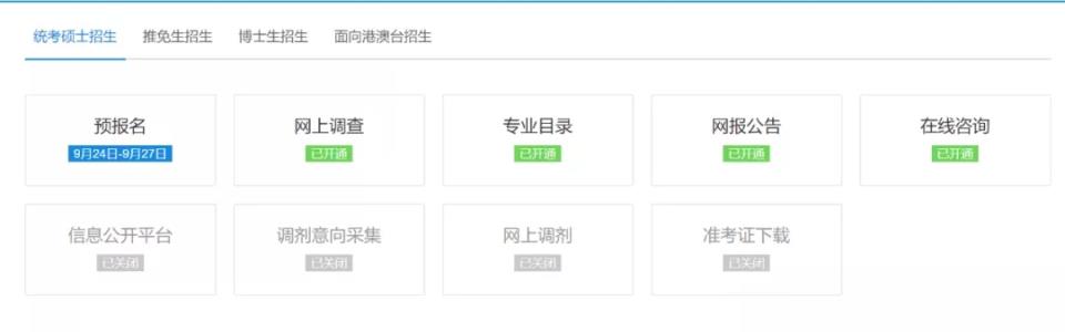 登入研招网(https://yz.chsi.com.cn/),预报名时间:9月24~27日,正式报名时间:10月10日-31日,9:00-22:00