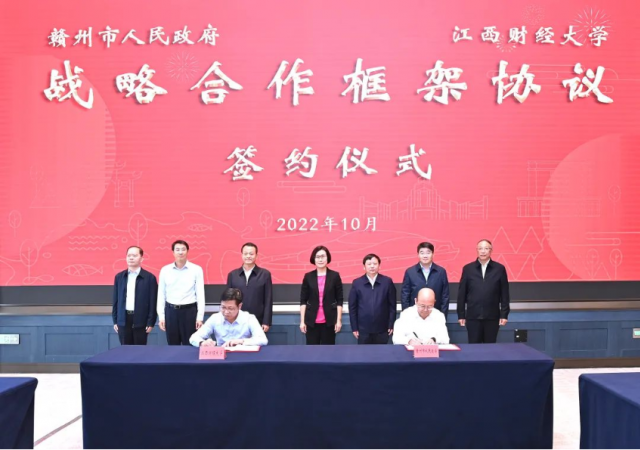 签约仪式前,双方座谈交流了赣州研究院、数字设计现代产业学院办学事宜。根据协议,双方将共建赣州研究院、现代产业学院。其中,江西财大赣州研究院建设内容包括研究生教育、人才培训、咨询服务、共建国家工业设计研究院等,将为赣州市现代家居等“1+5+N”产业发展提供强有力的人才、智力和项目支撑。