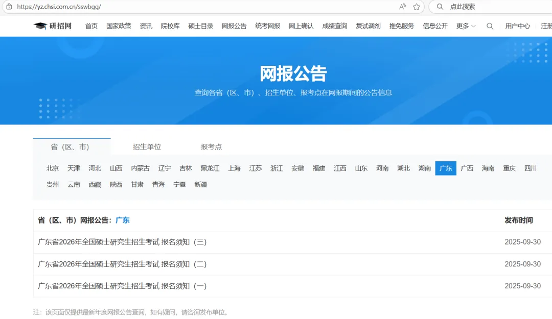 网报公告查阅地址(目前很多公告未更新,持续关注):https://yz.chsi.com.cn/sswbgg/