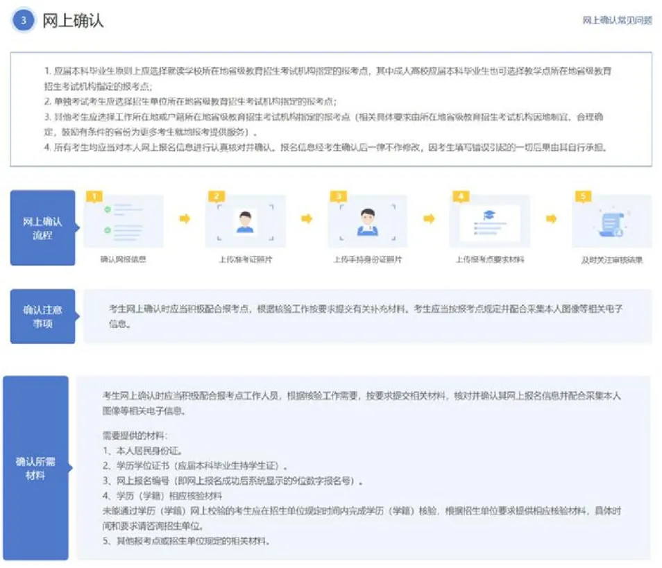 三、网上确认(2025年10月下旬至11月上旬,具体时间由各报考点根据教育部工作安排,结合实际情况确定,请考生密切留意)。