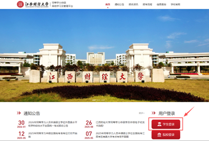 登录学习平台,输入账号与密码(均为本人学号),平台网址为:https://onlinestudy.campuswit.com/jxufe 。