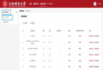 点击【作业上传】可查看本专业需要完成的作业,点击【提交】可上传本人作业。