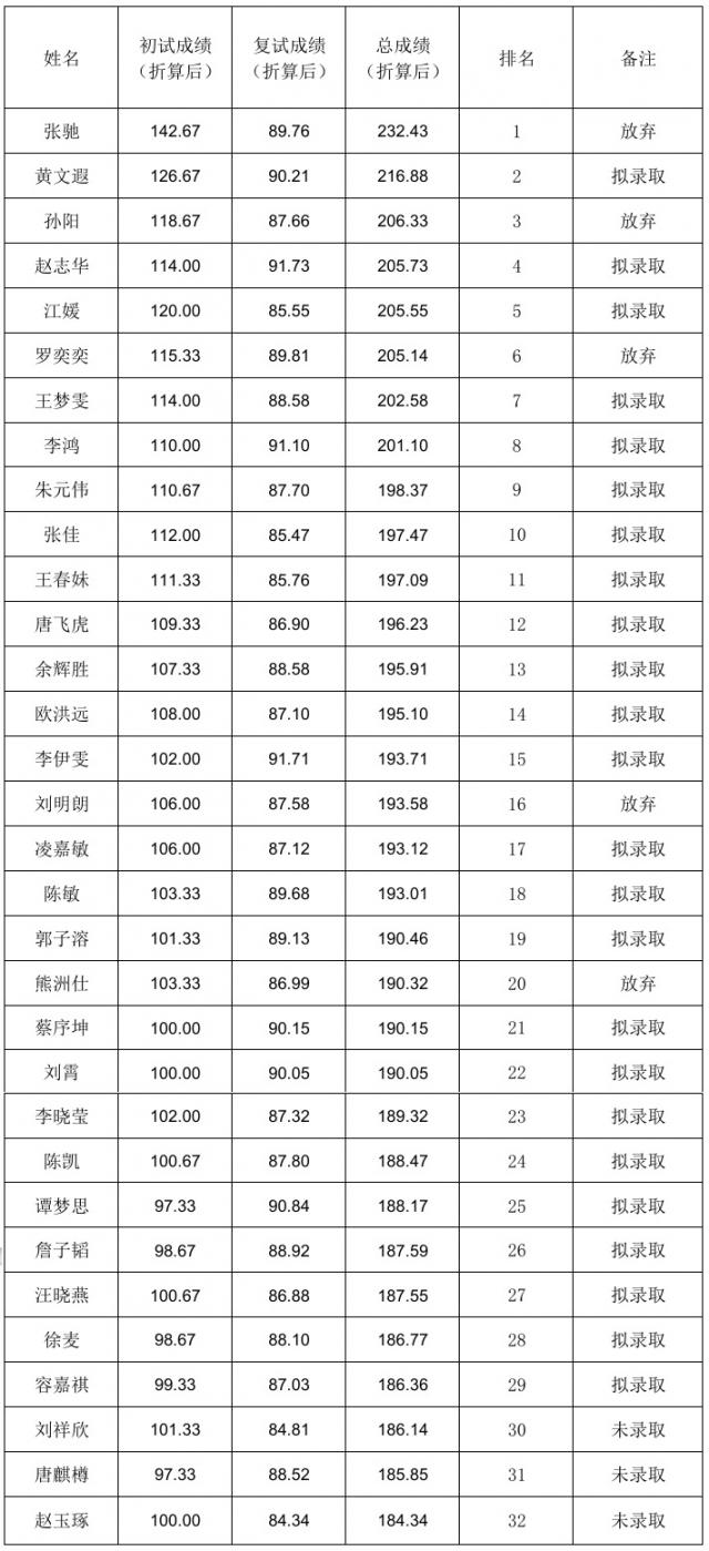 根据学校有关要求,现将深圳研究院2026年工商管理硕士(MBA)调剂复试成绩公示如下: